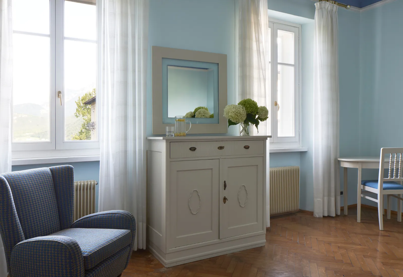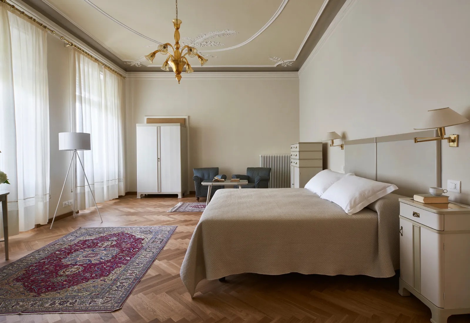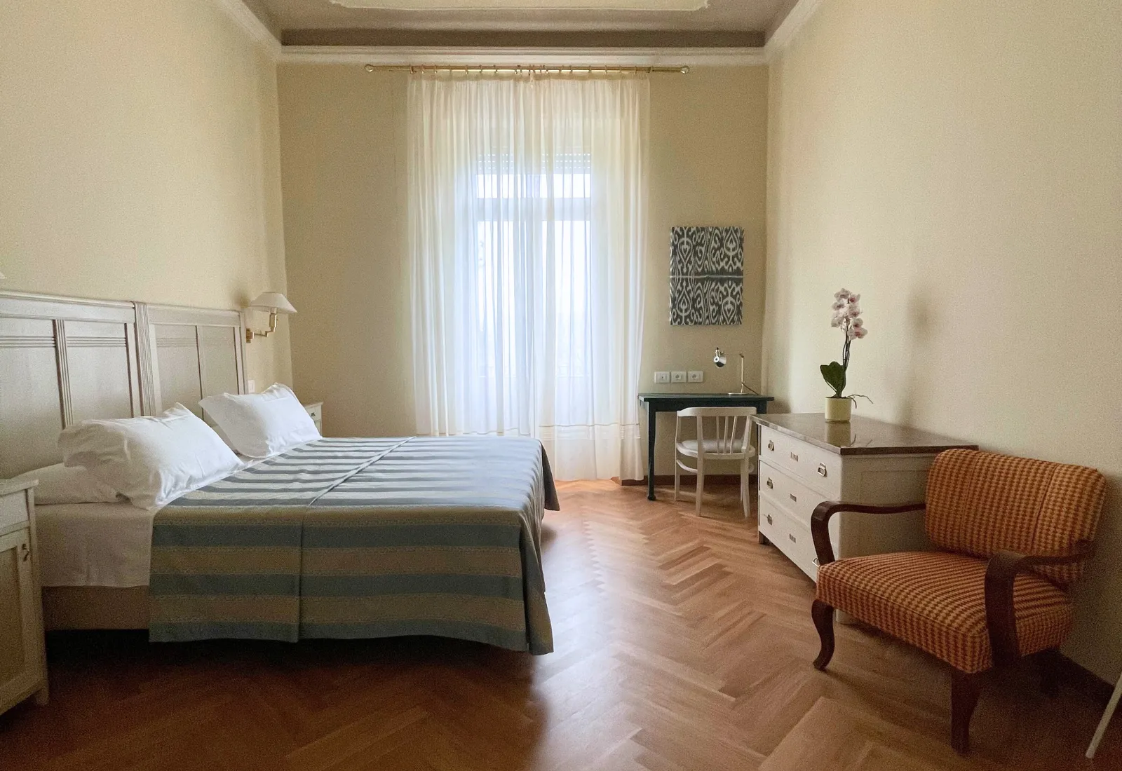 Doppelzimmer mit Aussicht20/25 mq 1/2 Leute 1 Bett Tal/Berge Sanfte Farben, elegantes Mobiliar und historische Details verleihen Ihrem Aufenthalt einen Hauch von Charme. Von den Fenstern aus können Sie das Tal bewundern und einen Blick auf die erholsame Blüte der Glyzinien erhaschen. |
