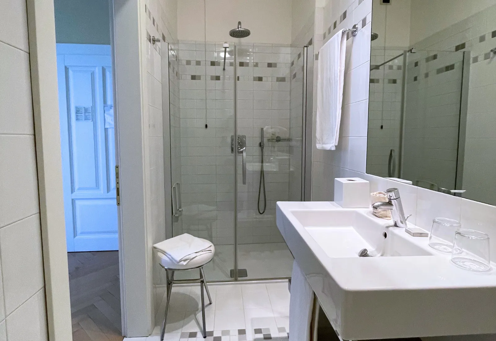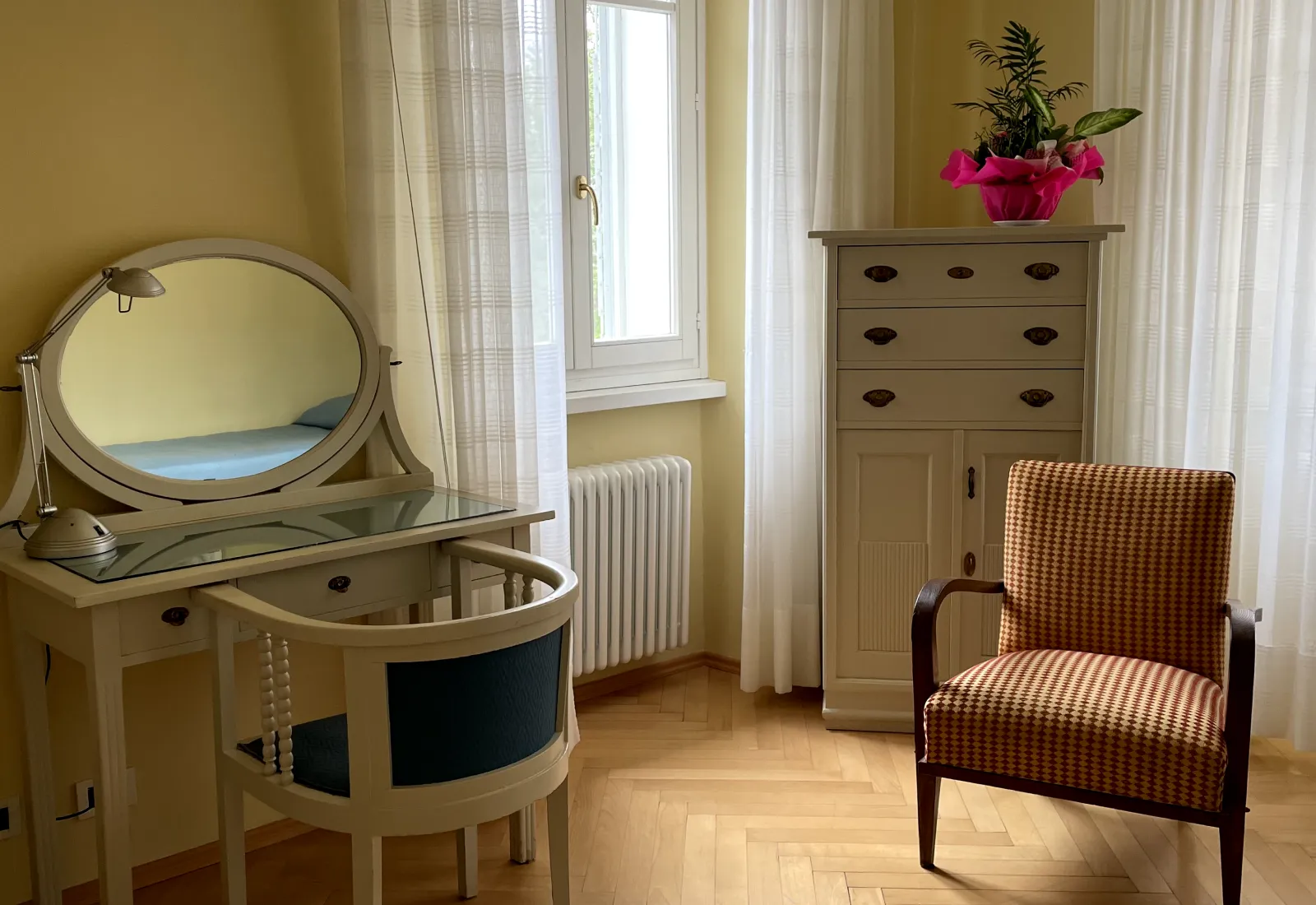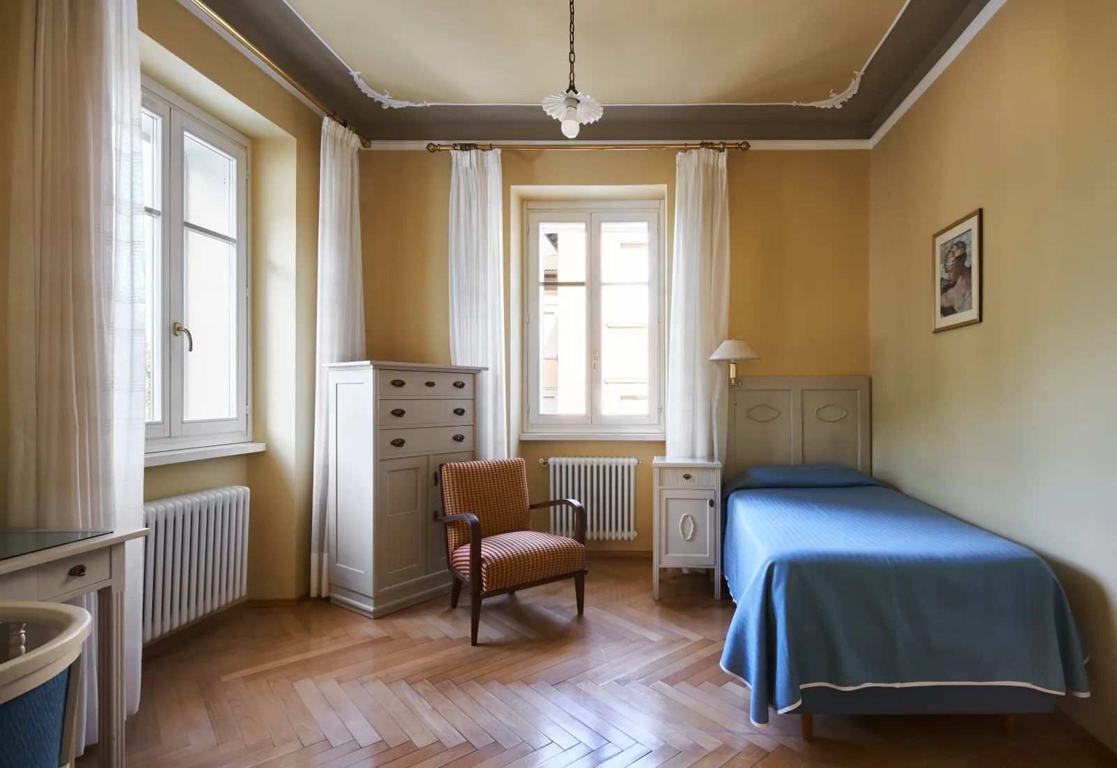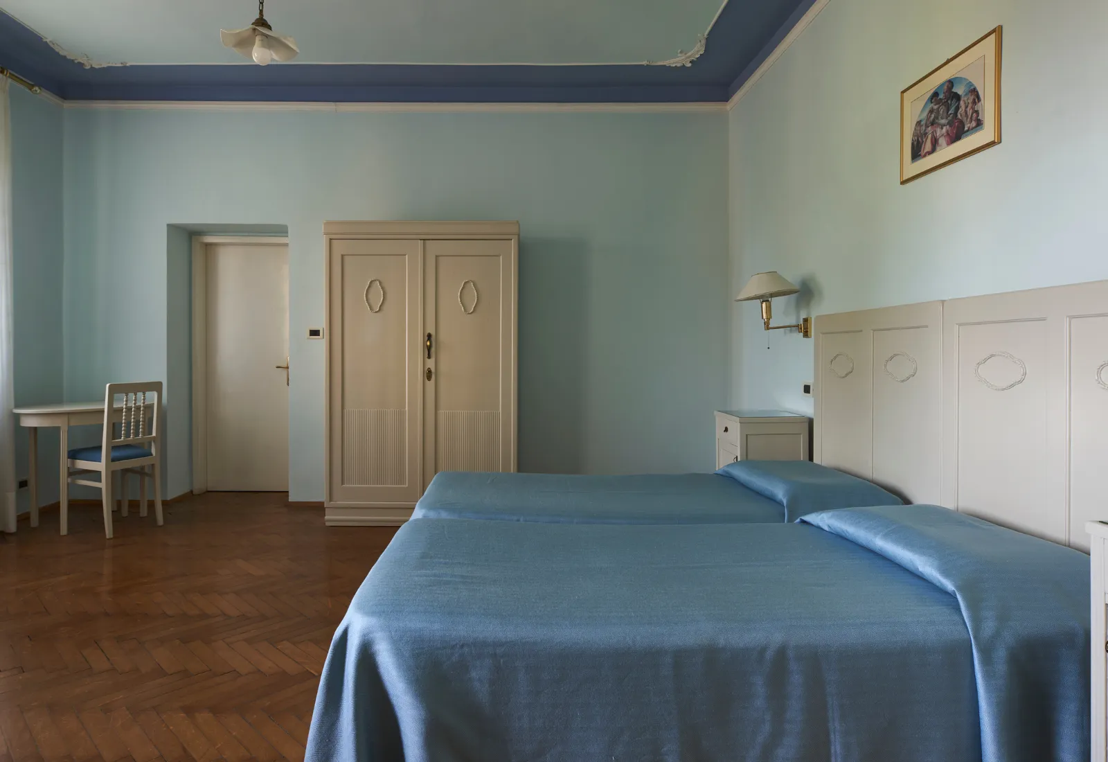 Doppelzimmer mit Aussicht20/25 mq 1/2 Leute 1 Bett Tal/Berge Sanfte Farben, elegantes Mobiliar und historische Details verleihen Ihrem Aufenthalt einen Hauch von Charme. Von den Fenstern aus können Sie das Tal bewundern und einen Blick auf die erholsame Blüte der Glyzinien erhaschen. |
